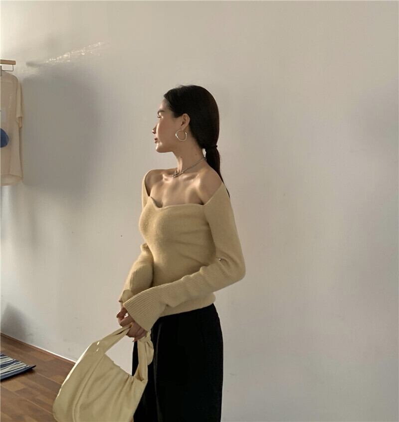 スタンダードニット セーターニット スリムフィット長袖 長そでスリーブ 袖プルオーバー トップス ロング マキシロング丈 マキシ丈 レトロ スクウェア スクエア 女性 レディース 可愛い系43656542898 | nice import1 a5