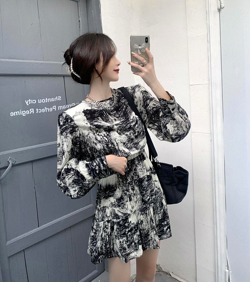 スタンダードプリントドレス ワンピースウエストショート ショート丈 ミニ ミニ丈スカート 薄手 ロング マキシロング丈 マキシ丈 レトロ 女性 レディース 可愛い系31362994393 | nice import1 a5