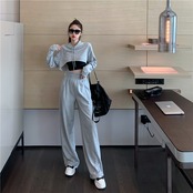 クロップドフードショート ショート丈 ミニ ミニ丈ニット セーターハイウエストウエストカジュアルワイドレッグパンツ ハイウェスト ロング マキシロング丈 マキシ丈 ワイドパンツ 女性 レディース 可愛い系17995985253