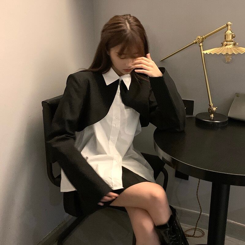 ダークショート ショート丈 ミニ ミニ丈ジャケット 上着 コートホワイト 白シャツ プリーツスカート 女性 レディース 可愛い系46437787414