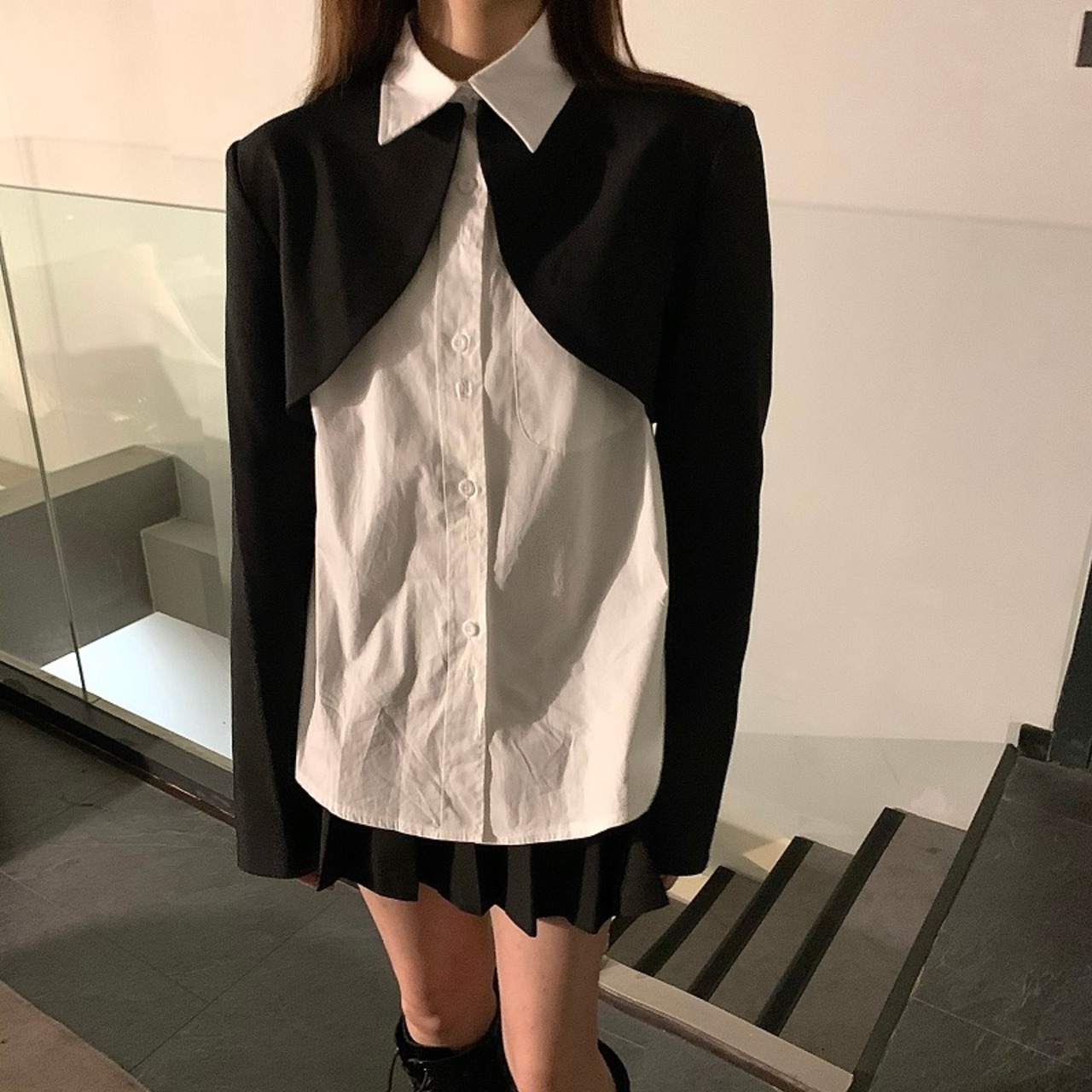 色:ショートスーツ,白のシャツ,プリーツスカートS,プリーツスカートM,プリーツスカートL