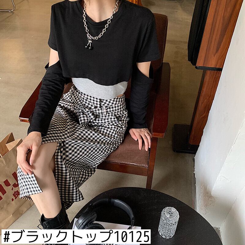 色:ブラックトップ10125,チェック柄のスカート10122,グレーベースベスト10118,ホワイトベースベスト10118