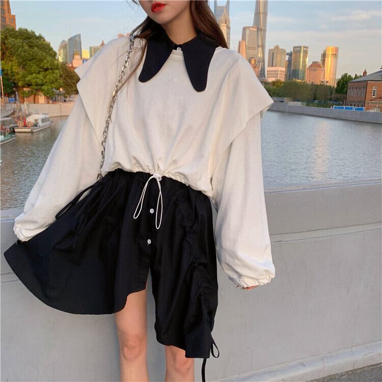 色:白いシャツスカート,黒シャツスカート,白いセーター,緑のセーター,グレーのセーター
