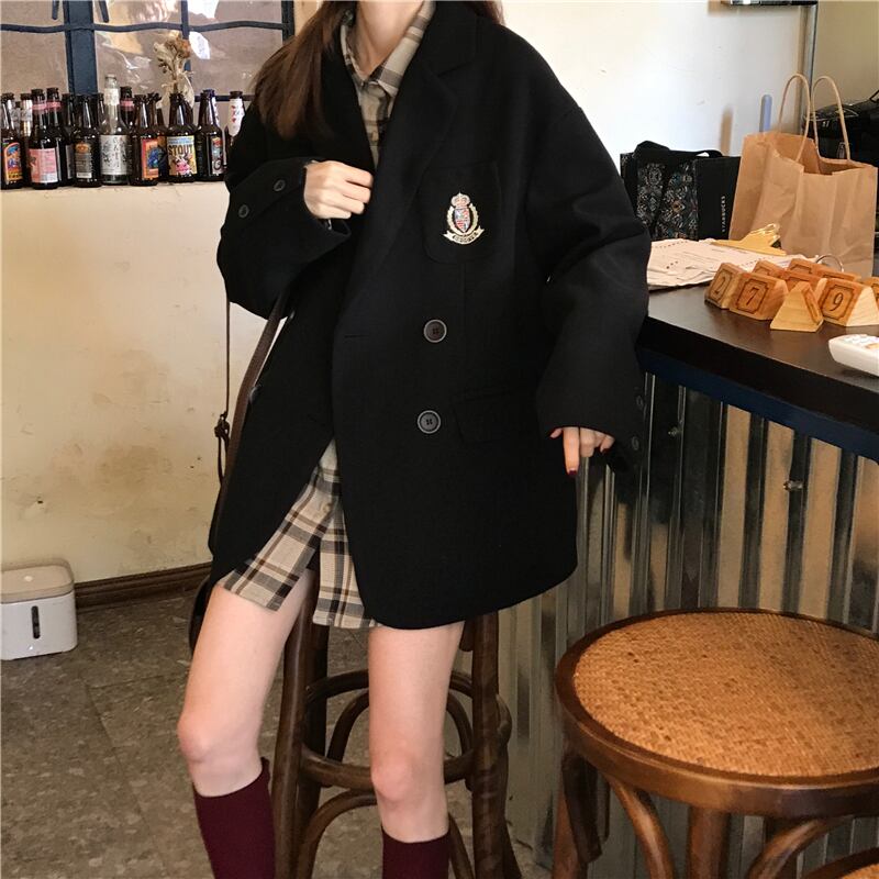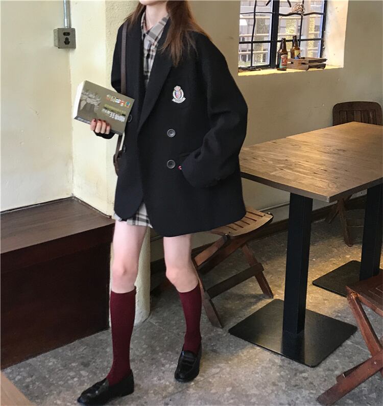 色:ウールコート,チェック柄シャツ