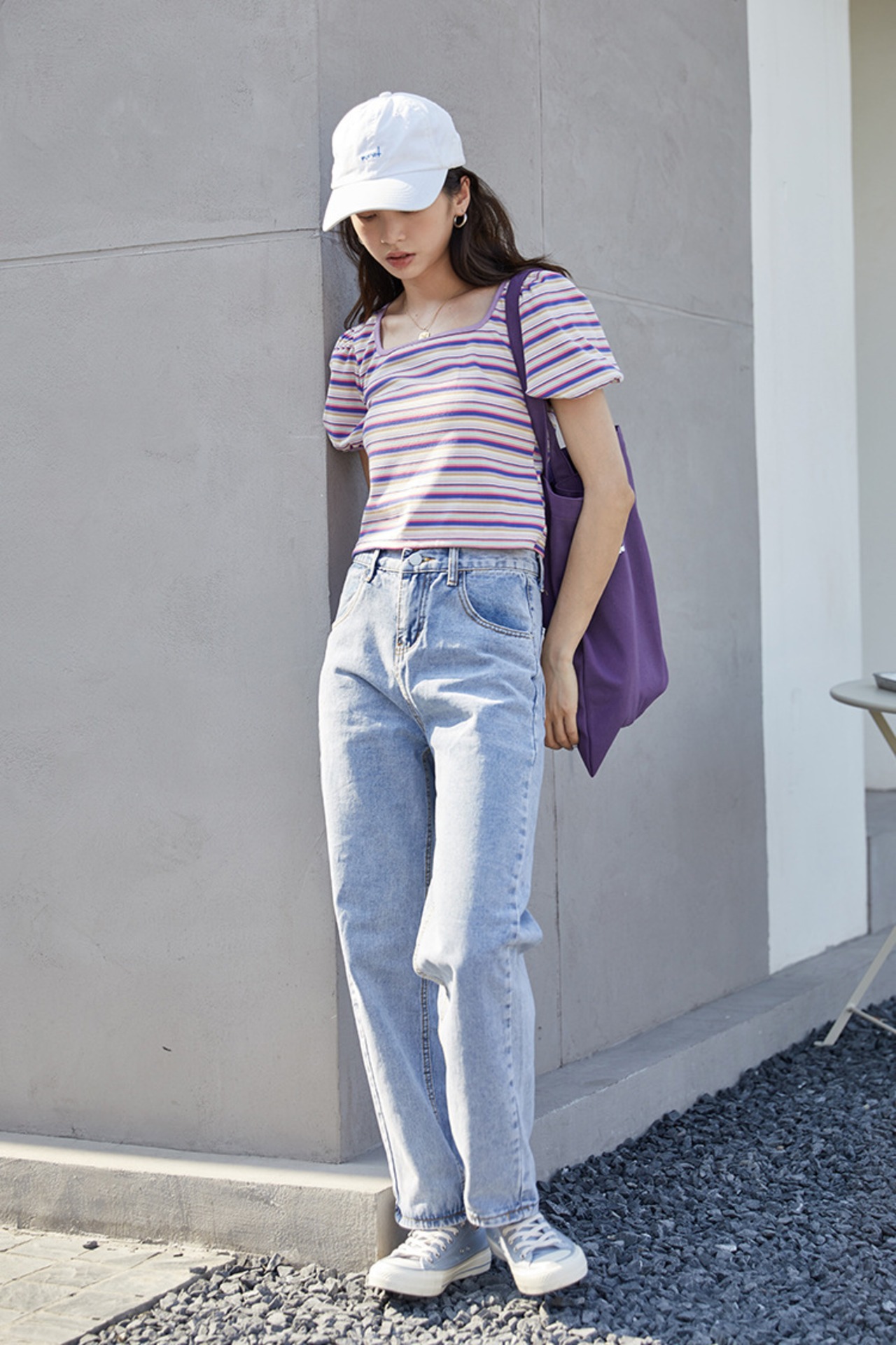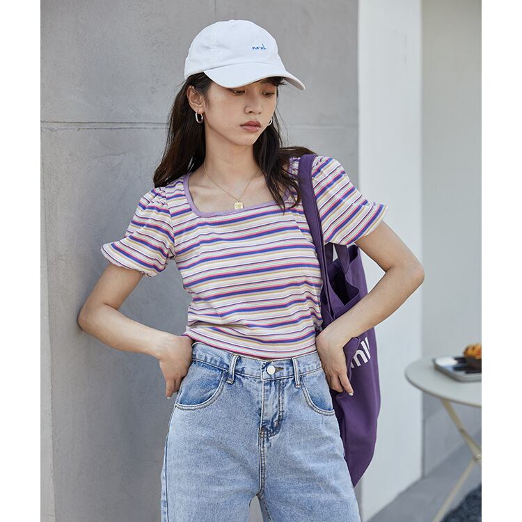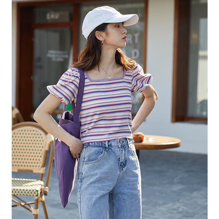 カラーストライプハイウエストウエストクロップドスリーブ 袖シャツ ハイウェスト ショート ショート丈 ミニ ミニ丈 かわいい 可愛い ガーリー 大人可愛い 大人かわいい フェミニン 大人ガーリー スクウェア スクエア 女性 レディース ふんわりかわいい78808372805 | nice import1 a5