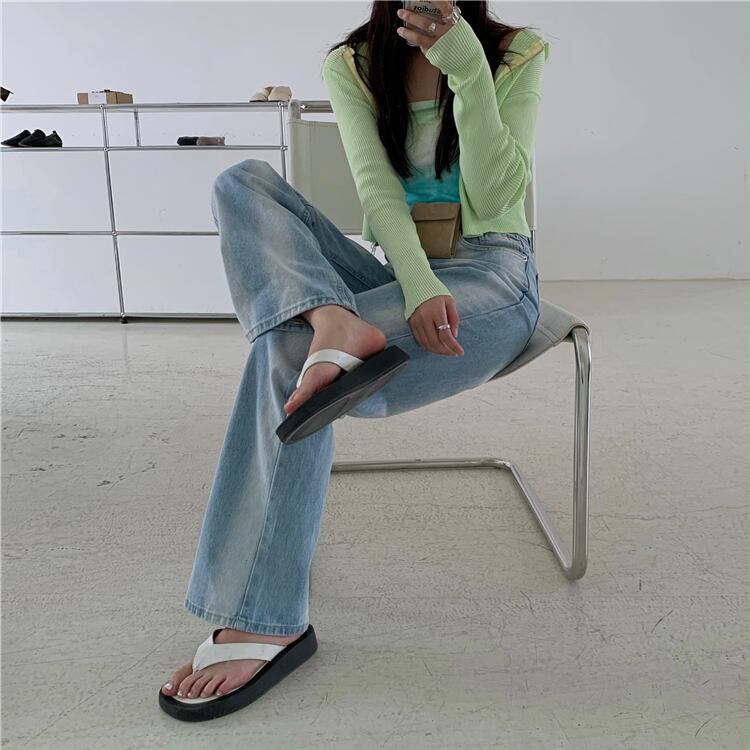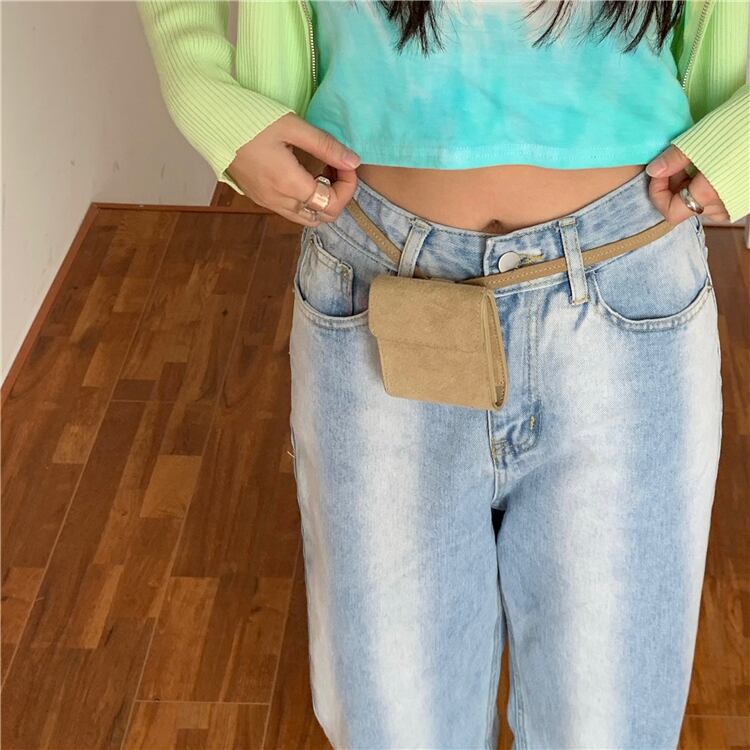 カラールーズハイウエストウエストカジュアルジーンズ デニム ハイウェスト 女性 レディース 可愛い系16915885157