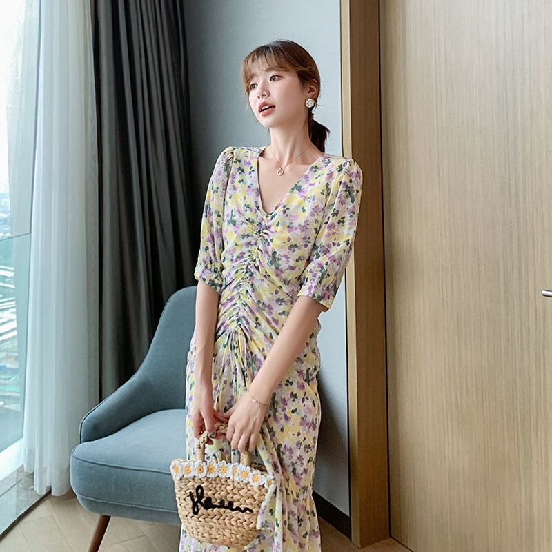 スタイルロング マキシ ロング丈 マキシ丈スタンダードVネック薄手花柄 お花 フラワーシフォンドレス ワンピース マキシロング丈 レトロ パープル 女性 レディース ふんわりかわいい36439117555 | nice import1 a5