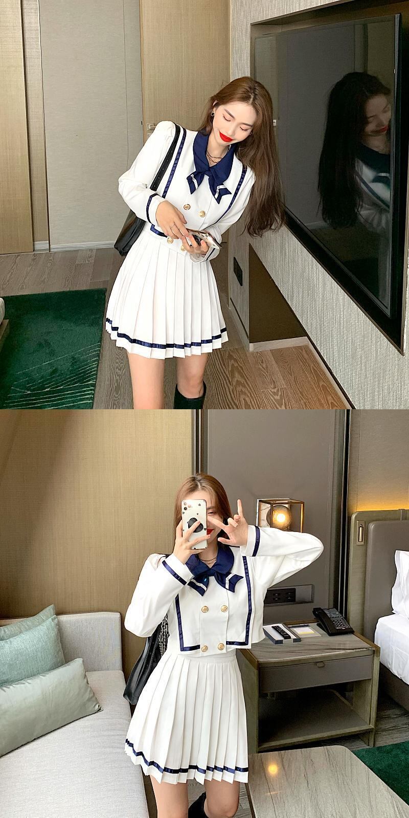 色:ブルートップ,ホワイトトップ,ブループリーツスカート,白いプリーツスカート