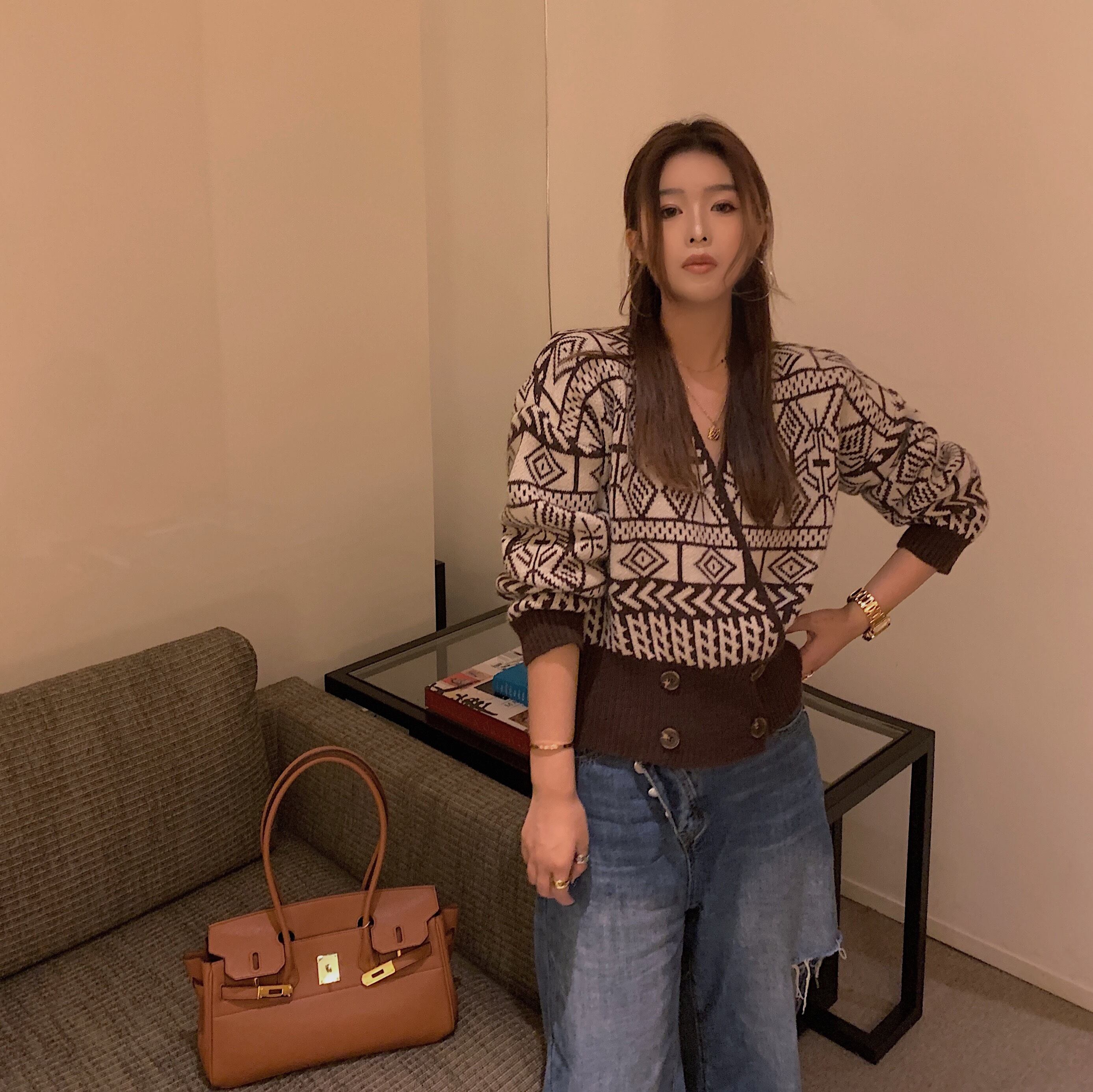 スタンダードルーズニット セーターカーディガン 上着ジャケット 上着 コートVネックショート ショート丈 ミニ ミニ丈ニットトップス レトロ 女性 レディース 可愛い系15326085808 | nice import1 a5