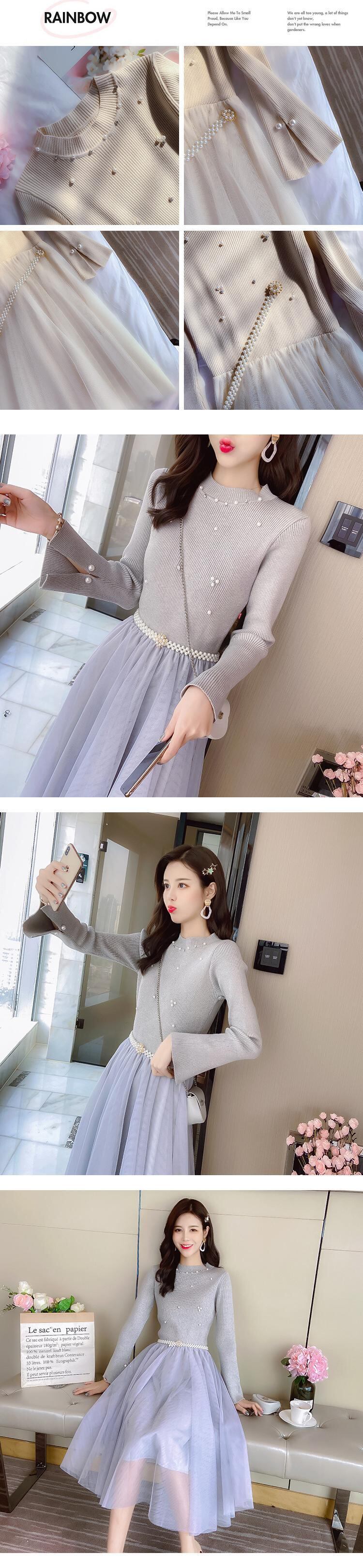 ニットメッシュ レース シースルー チュール オーガンジードレス ワンピース長袖 長そでスリーブ 袖ミディ ロング マキシロング丈 マキシ丈 スカート ステッチ 女性 レディース フェミニン系97082295767 | nice import1 a5