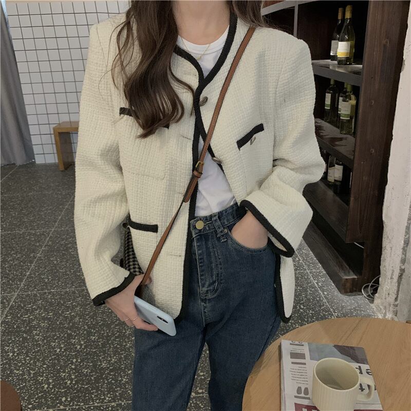 ツイードジャケット 上着 コートルーズ薄手カラーラウンドネック長袖 長そでスリーブ 袖トップス ロング マキシロング丈 マキシ丈 女性 レディース 可愛い系87173331606 | nice import1 a5