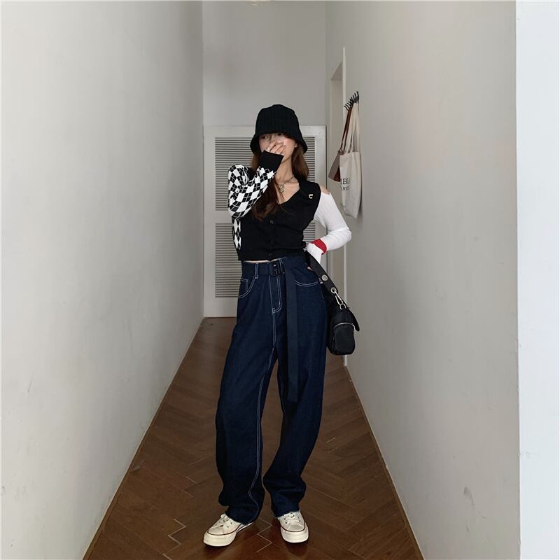 色:コントラストニットトップス,ジーンズ(送信ベルト)