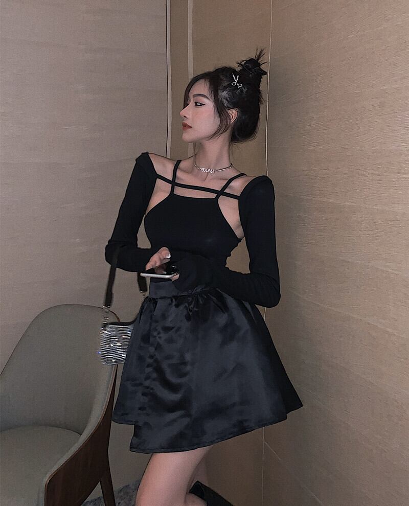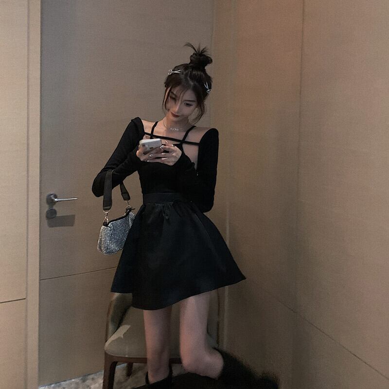 ブラック 黒ショート ショート丈 ミニ ミニ丈スカート 薄手ハイウエストウエスト長袖 長そでスリーブ 袖トップス ハイウェスト ロング マキシロング丈 マキシ丈 女性 レディース 可愛い系2217971558 | nice import1 a5