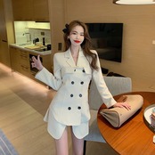 色:ベージュコート,黒いジャケット,オフホワイトの胸ラップ,ブラックラップチェスト