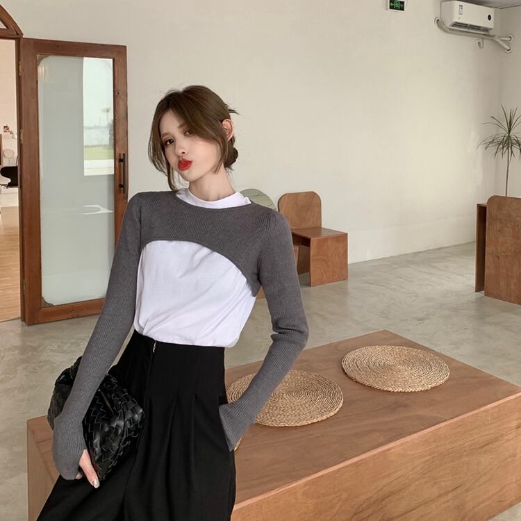 スタイルラウンドネックTシャツ ニットブラウス ハイウエストウエストパンツ ハイウェスト ショート ショート丈 ミニ ミニ丈 ロング マキシロング丈 マキシ丈 トップス 女性 レディース 可愛い系74390877385 | nice import1 a5