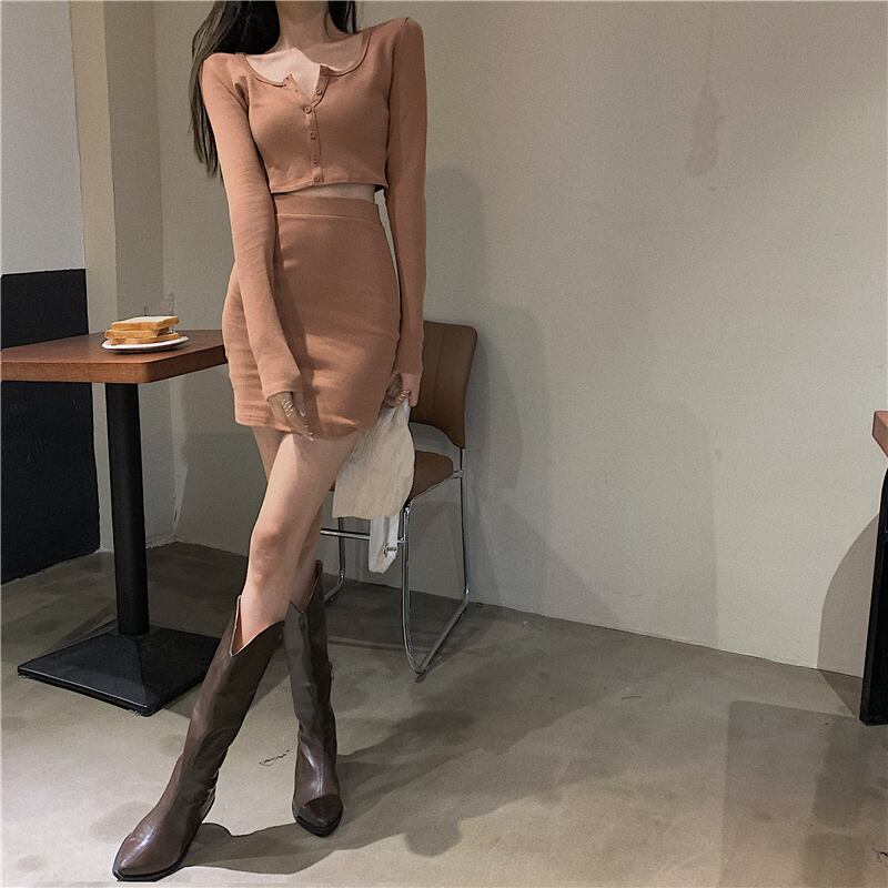 色:キャメルトップ,キャメルスカート,ブラックトップ,黒スカート