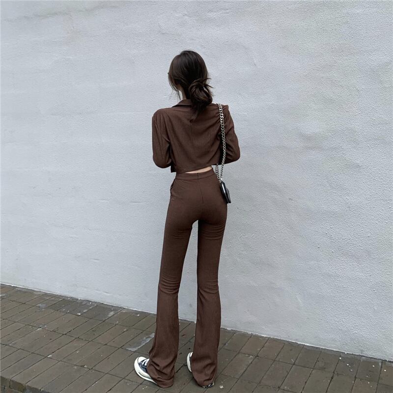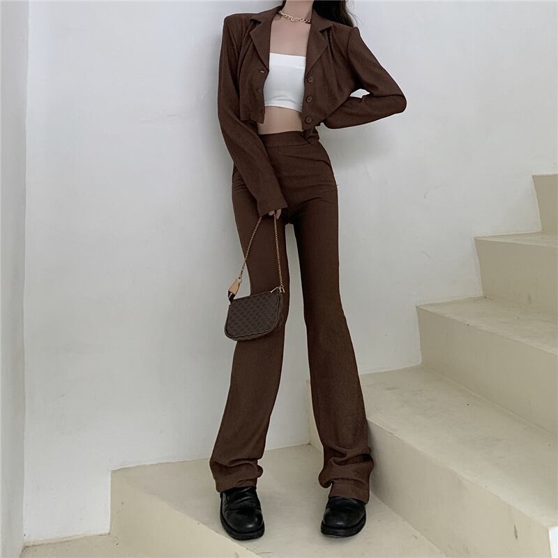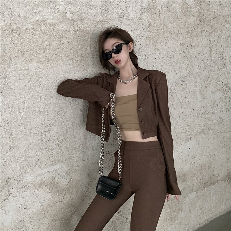 色:スーツ,マイクロフレアパンツ,白いチューブトップ,コーヒーカラーのチューブトップ
