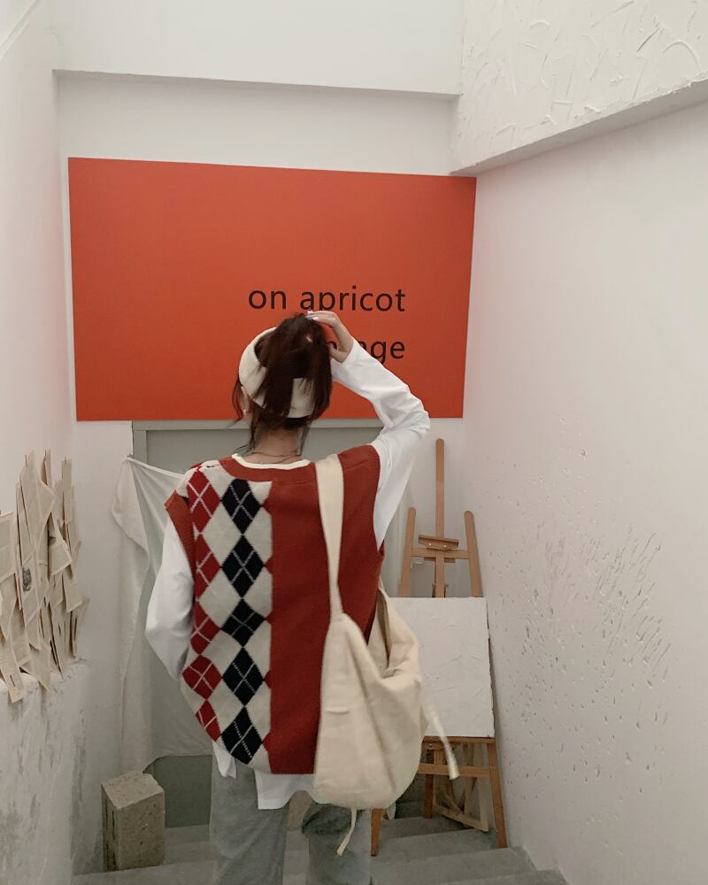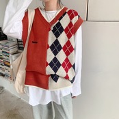 色:赤い格子縞のベスト,ブラックチェック柄ベスト,ホワイトベースTシャツ