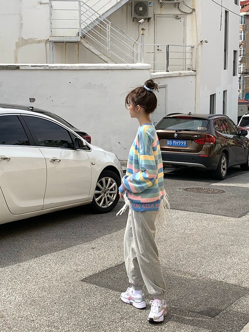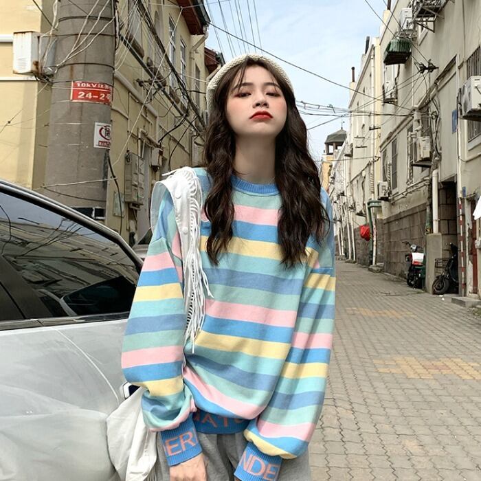 ストライププルオーバー 長袖 長そでスリーブ 袖スウェット スウエット スエットトップス ロング マキシロング丈 マキシ丈 女性 レディース 可愛い系66948418834 | nice import1 a5
