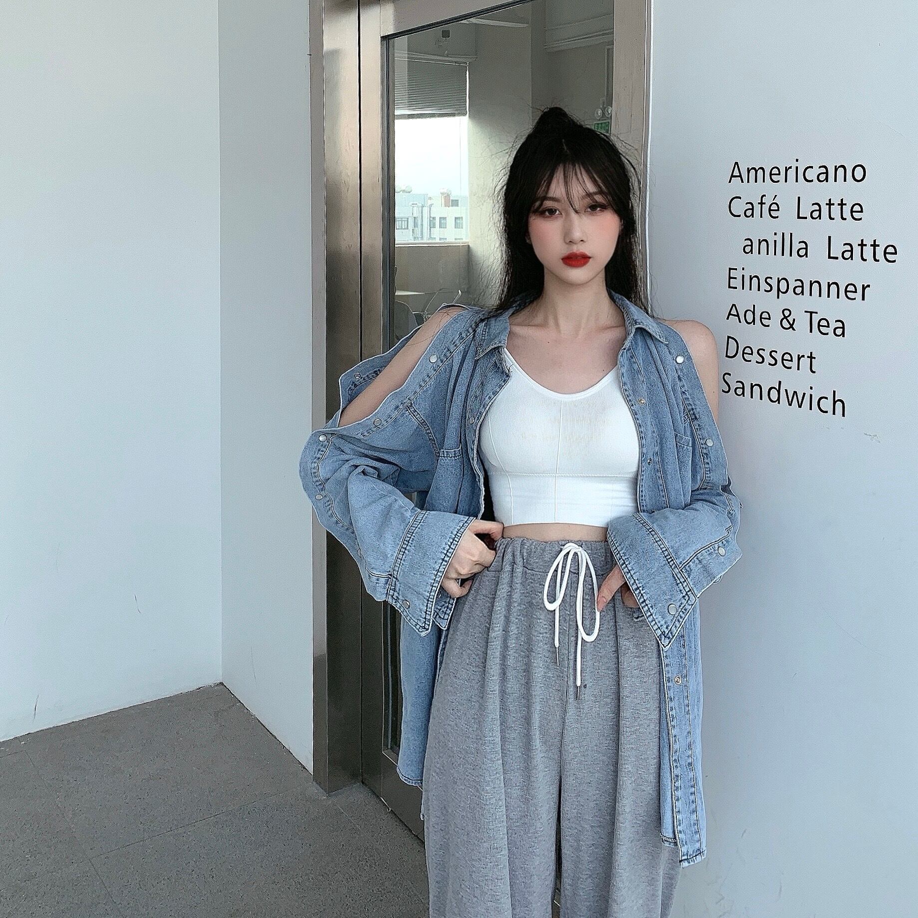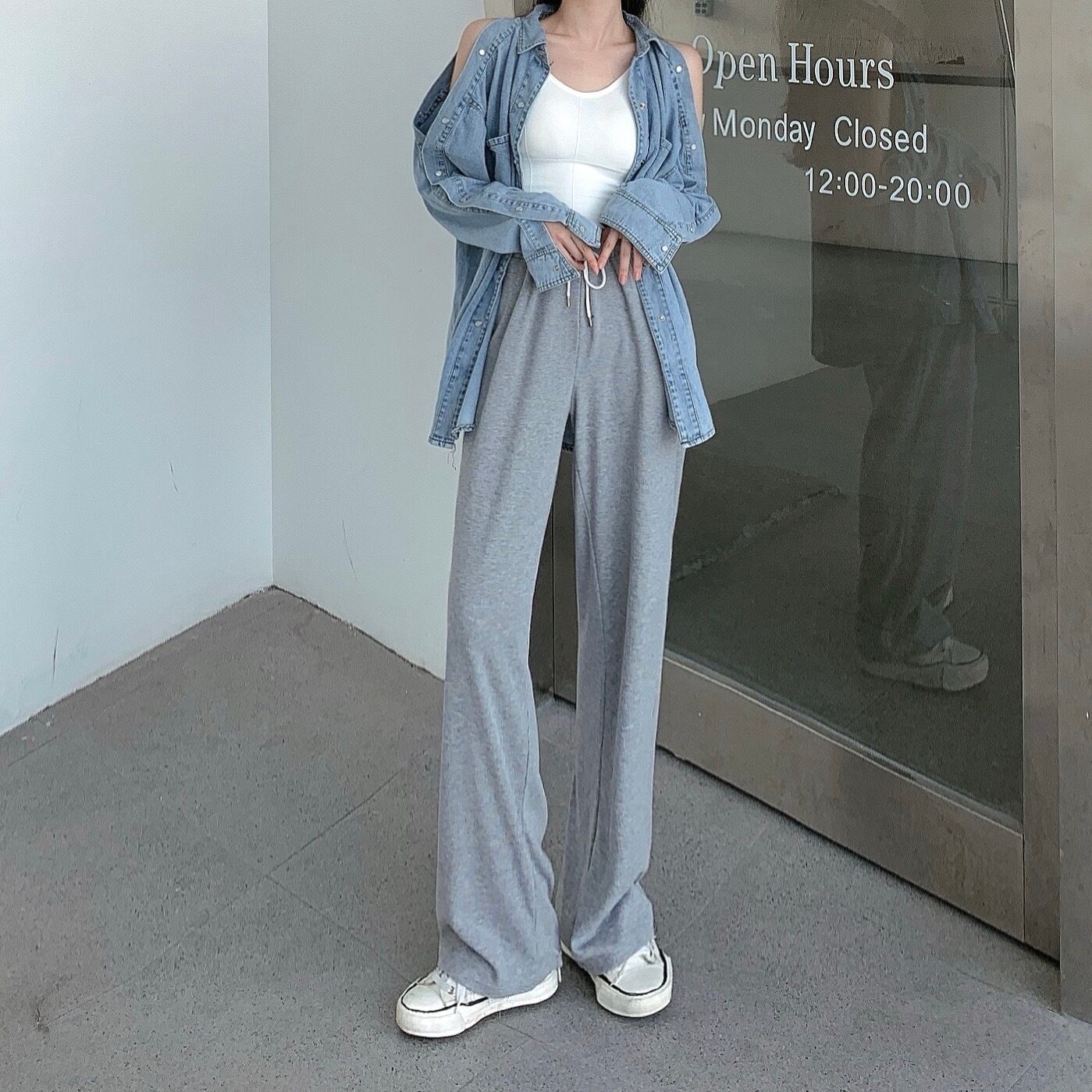 色:ジージャン,グレーパンツ