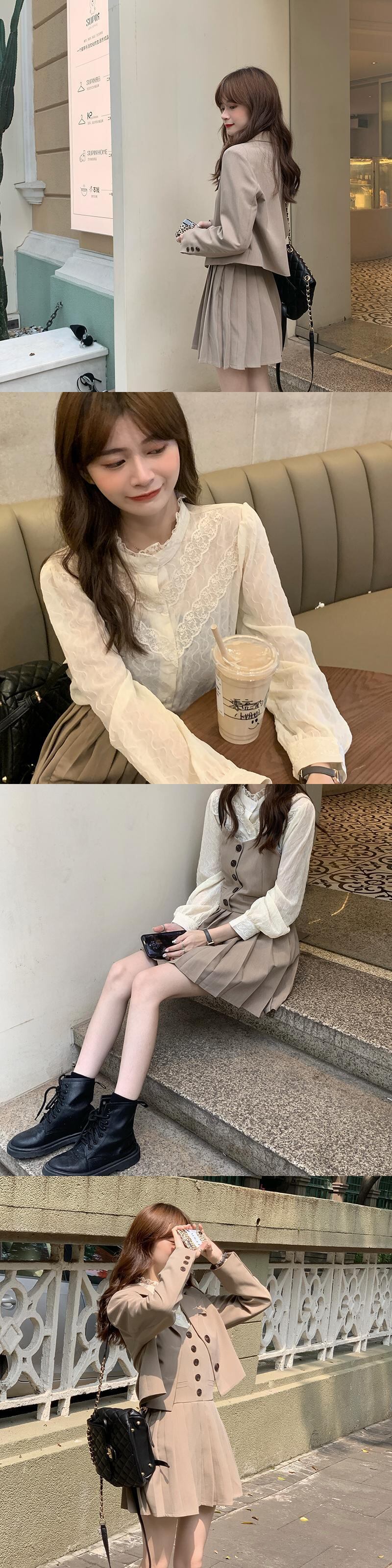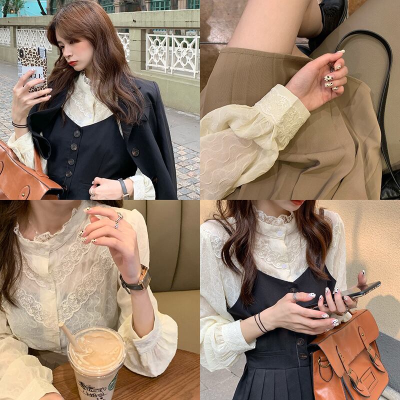 色:カーキスーツ10269,黒のスーツ10269,カーキスリングスカート10280,黒のサスペンダースカート10280,アプリコットベースシャツ10281