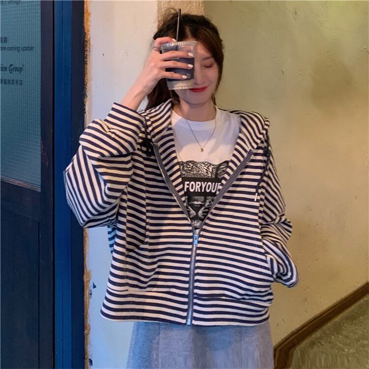 ルーズストライプニット セーターショート ショート丈 ミニ ミニ丈ジャケット 上着 コートスタイル薄手ニットスカート レディース 女性 レディース 可愛い系7723154949
