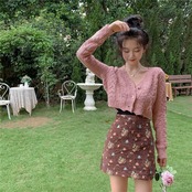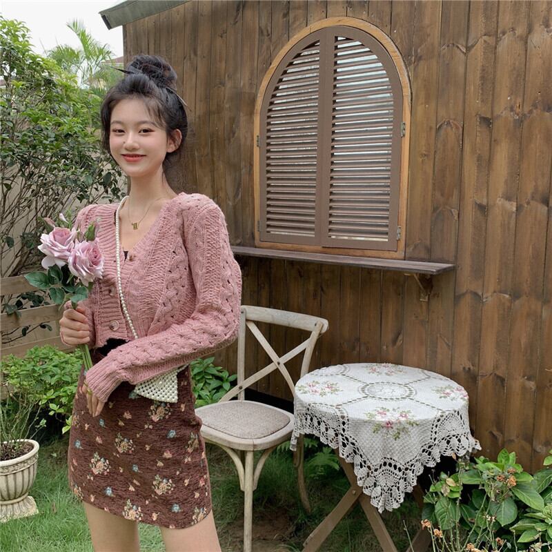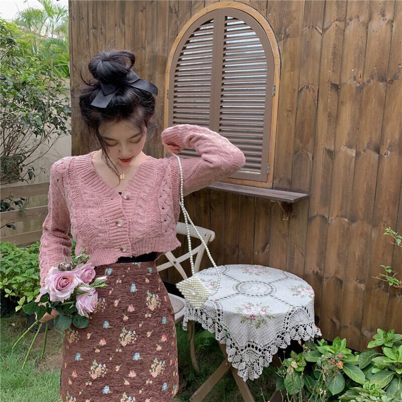 スタンダード刺繍花柄 お花 フラワースカート オレンジVネックニット セーターセット ロング マキシロング丈 マキシ丈 ピンク レトロ 女性 レディース 可愛い系50911410029 | nice import1 a5