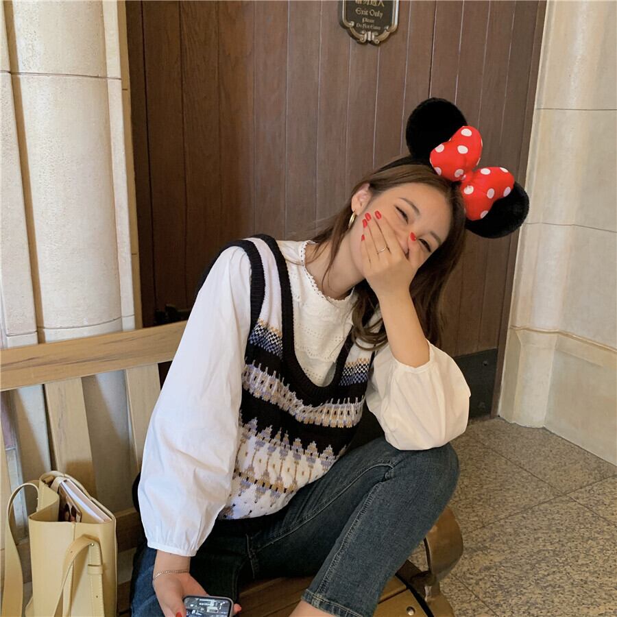色:対照的なヴィンテージのベスト,レースパネルシャツ