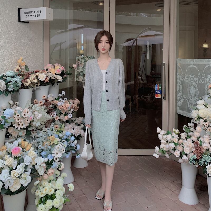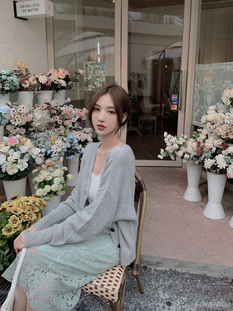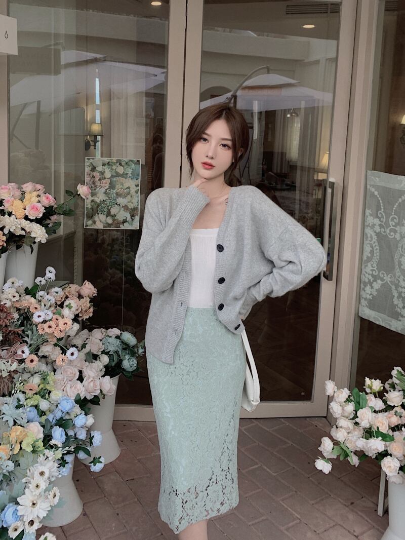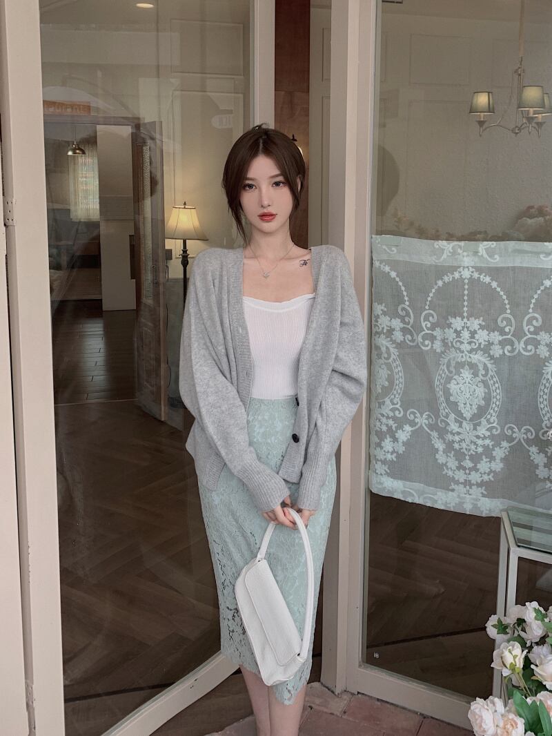 色:ホワイトサスペンダー,ガールズグレーカーディガン,ミントグリーンスカート