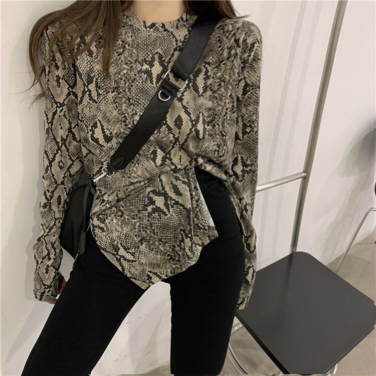 スタイルスネークプリント柄Tシャツ シャツ レディースルーズトップス ロング マキシロング丈 マキシ丈 ストリート 女性 レディース 可愛い系43504051675 | nice import1 a5