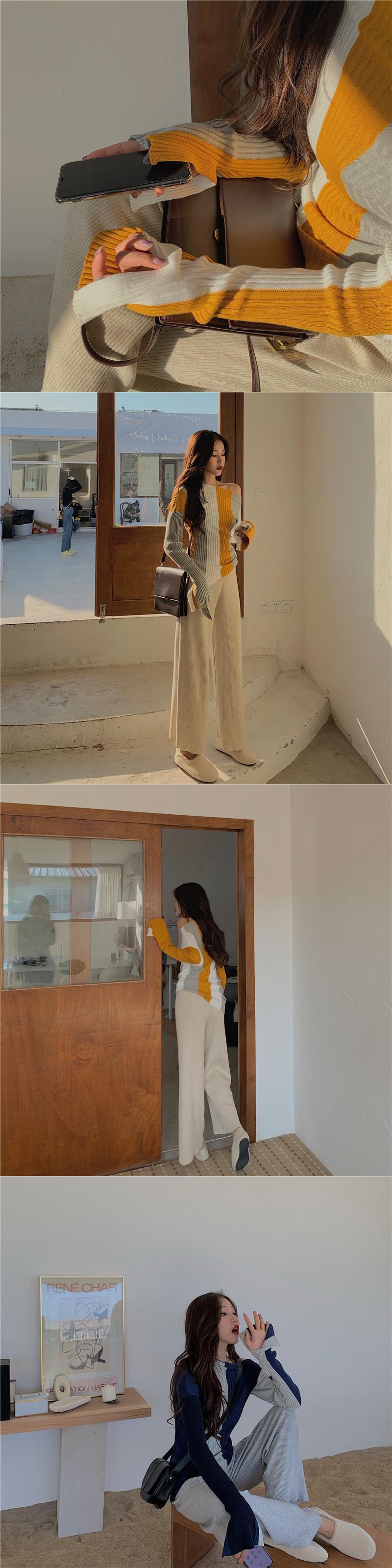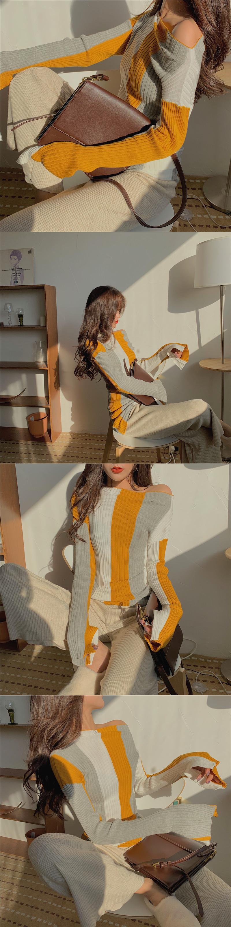 スタイルストレッチカラーニットシャツ ハイウエストウエストニット セーターワイドレッグパンツ ハイウェスト エラスティック 伸縮 肩出し オフショルダー オフショル ワイドパンツ 女性 レディース 可愛い系23507810414 | nice import1 a5