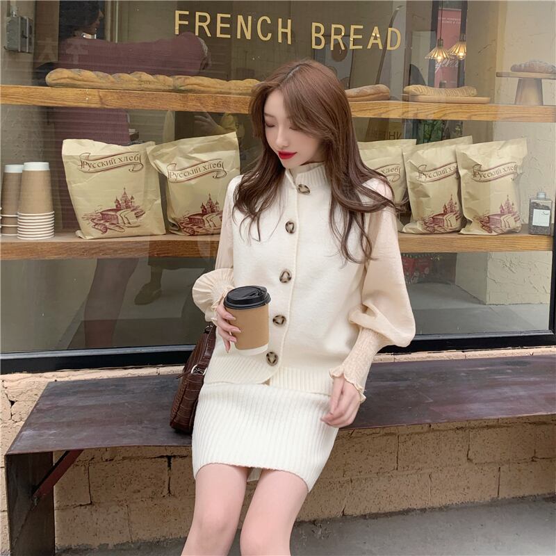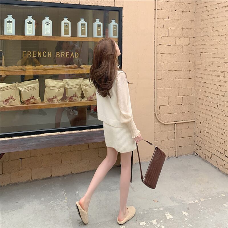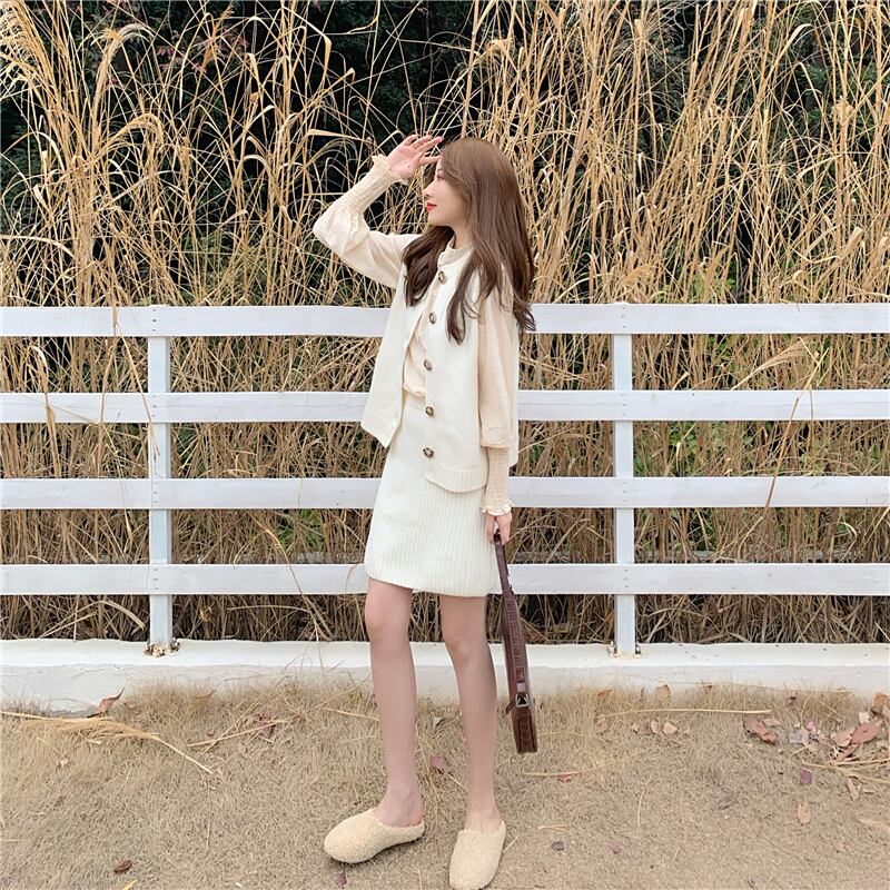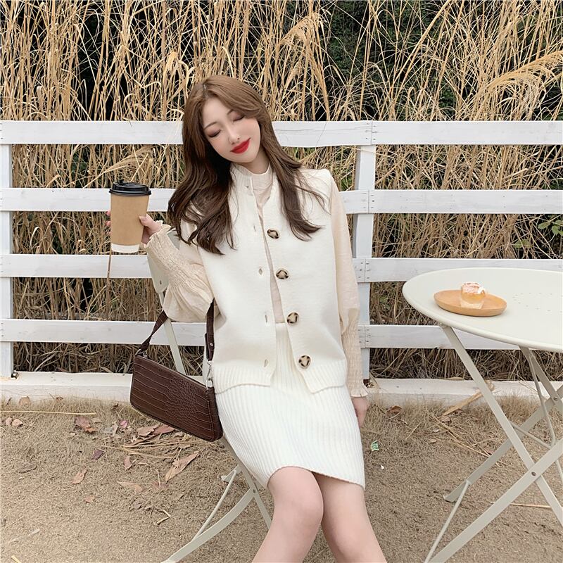 色:アプリコットボトムスシャツ,白いベスト,白い短いスカート