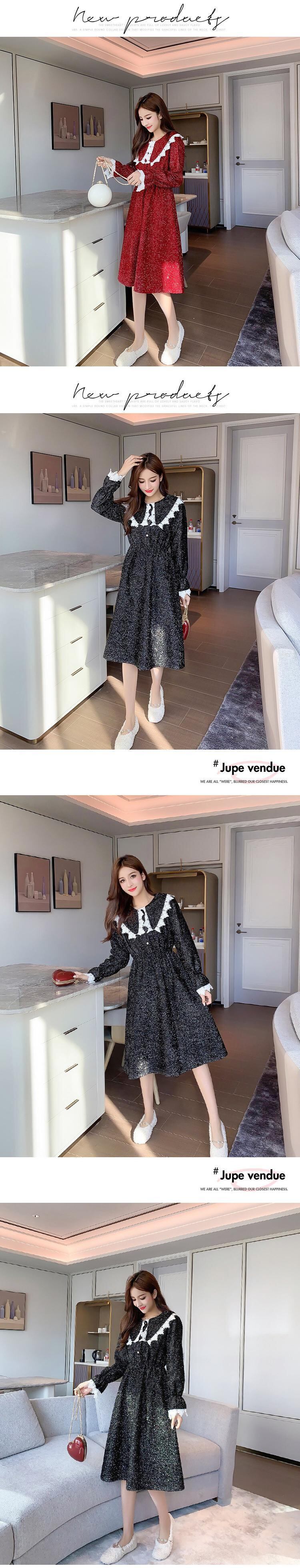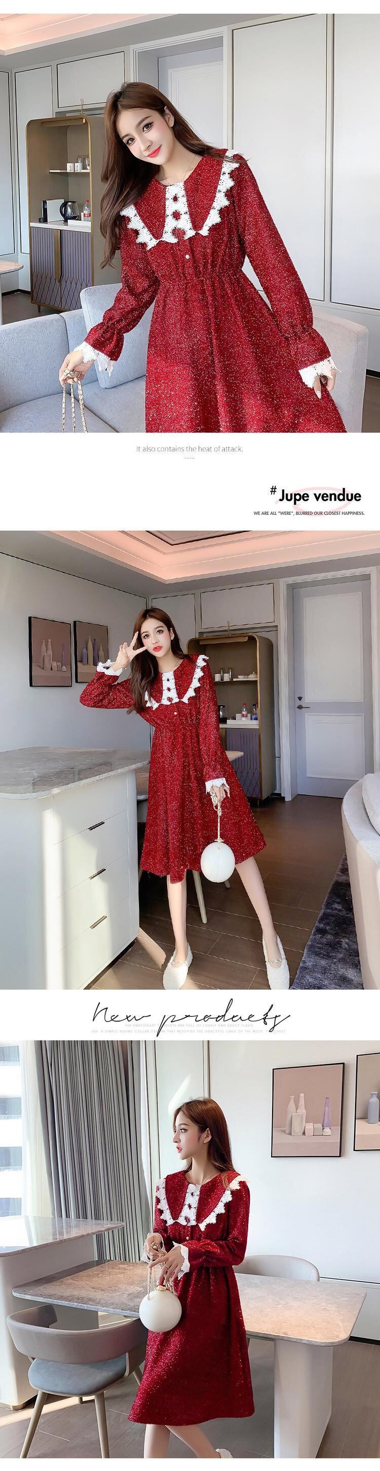 レッド 赤レーススリーブ 袖長袖 長そでドレス ワンピース ロング マキシロング丈 マキシ丈 スカート ステッチ 女性 レディース フェミニン系86754862896 | nice import1 a5