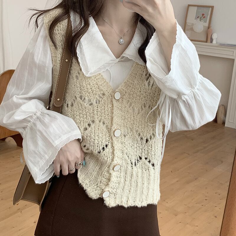 色:白いシャツ10255,アプリコットセーターベスト20003