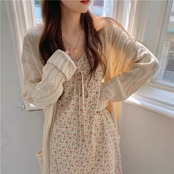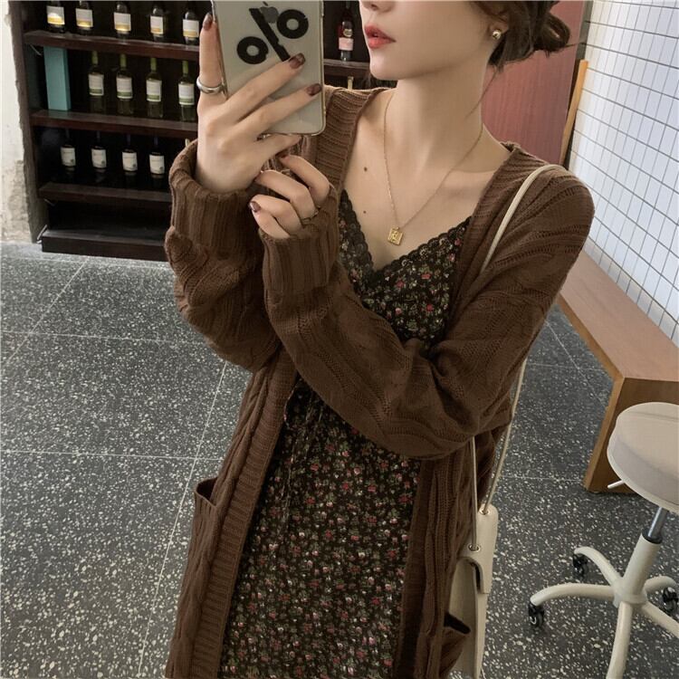 色:白いドレス,カードカラーサスペンダースカート,アプリコットセーター,カーキ色のセーター