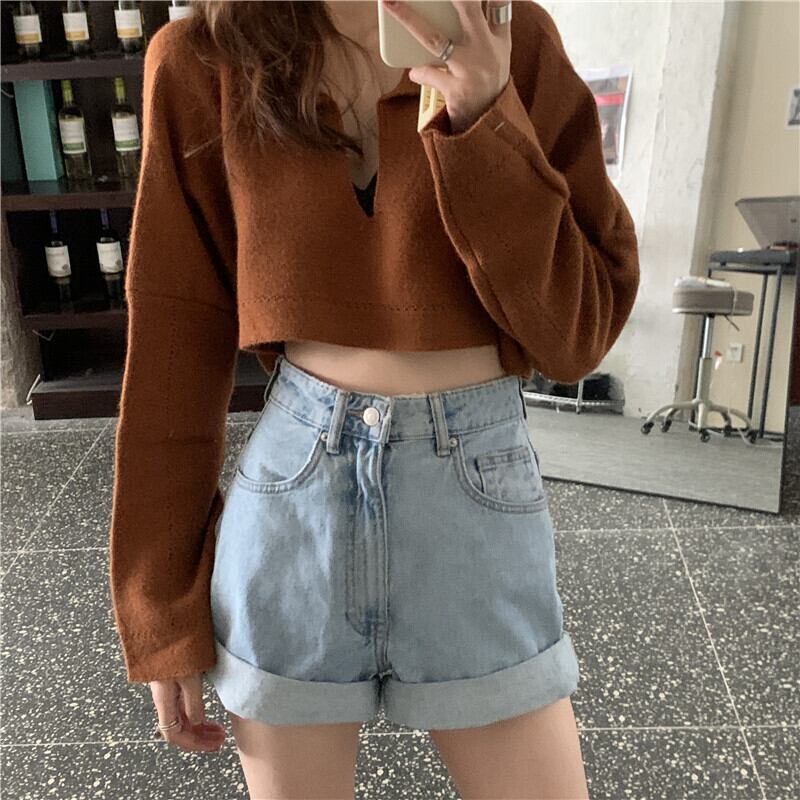 ショート ショート丈 ミニ ミニ丈Vネックニット セータールーズニットトップス 女性 レディース 可愛い系3981784387