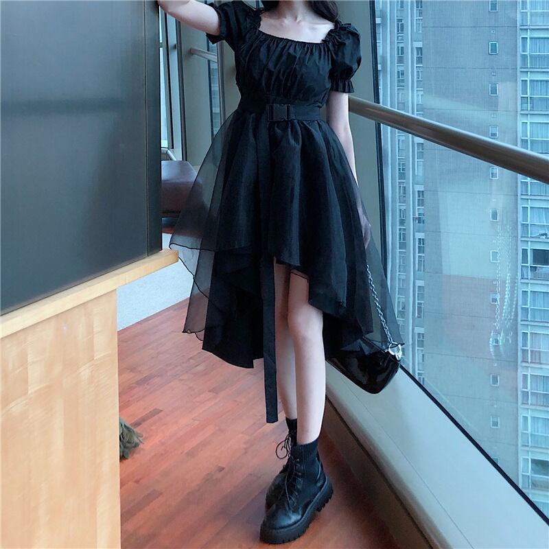 スタイルカラーブラック 黒ドレス ワンピースメッシュ レース シースルー チュール オーガンジー ハーネス ベルト スクウェア スクエア 女性 レディース ふんわりかわいい62458673767