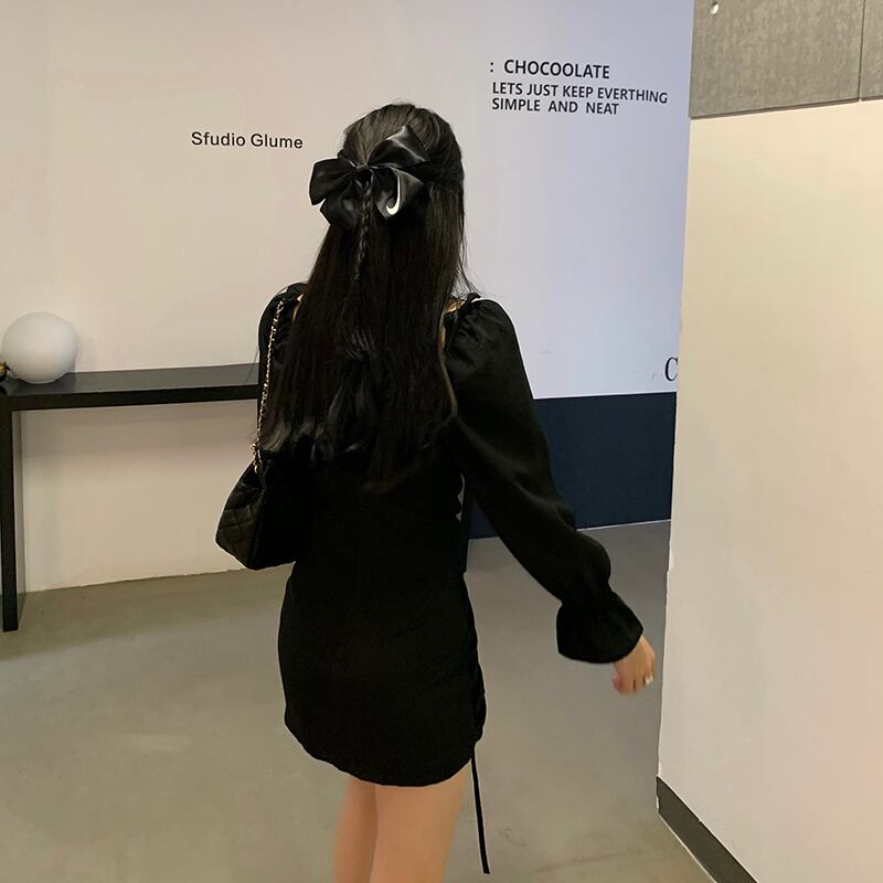 ブラック 黒スカート ギャザー長袖 長そでスリーブ 袖ドレス ワンピース ロング マキシロング丈 マキシ丈 スクウェア スクエア 女性 レディース 可愛い系16858731039 | nice import1 a5