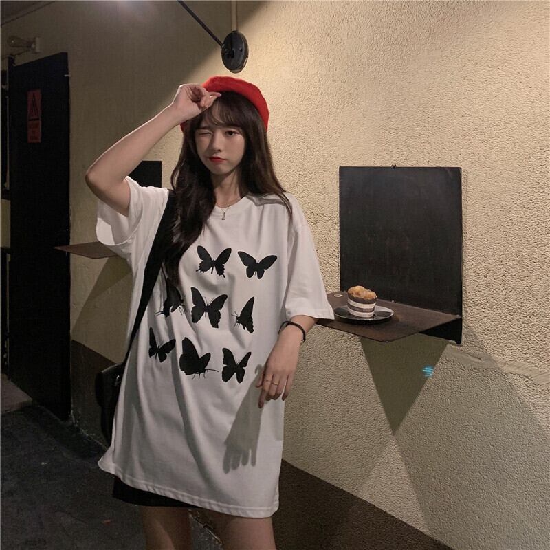 バタフライ 蝶々 ちょうちょ アゲハプリント柄半袖 半そでスリーブ 袖Tシャツ ショート ショート丈 ミニ ミニ丈 コットン ハーフスリーブ 女性 レディース ふんわりかわいい7980005628 | nice import1 a5