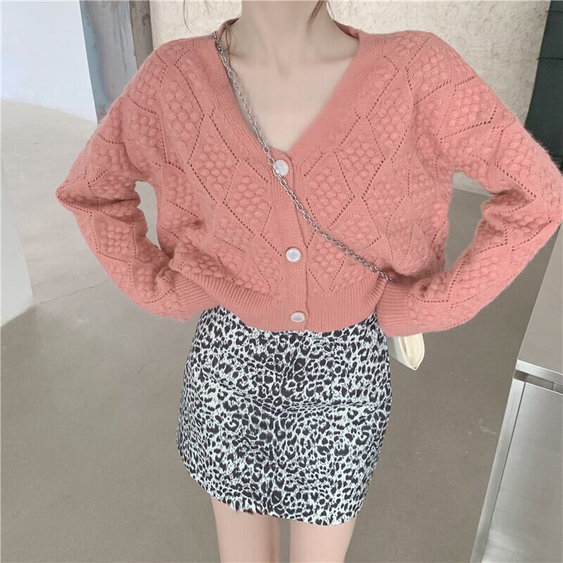ニットカーディガン 上着ルーズVネックニット セーターレオパードプリント柄スカート 女性 レディース 可愛い系87707659047