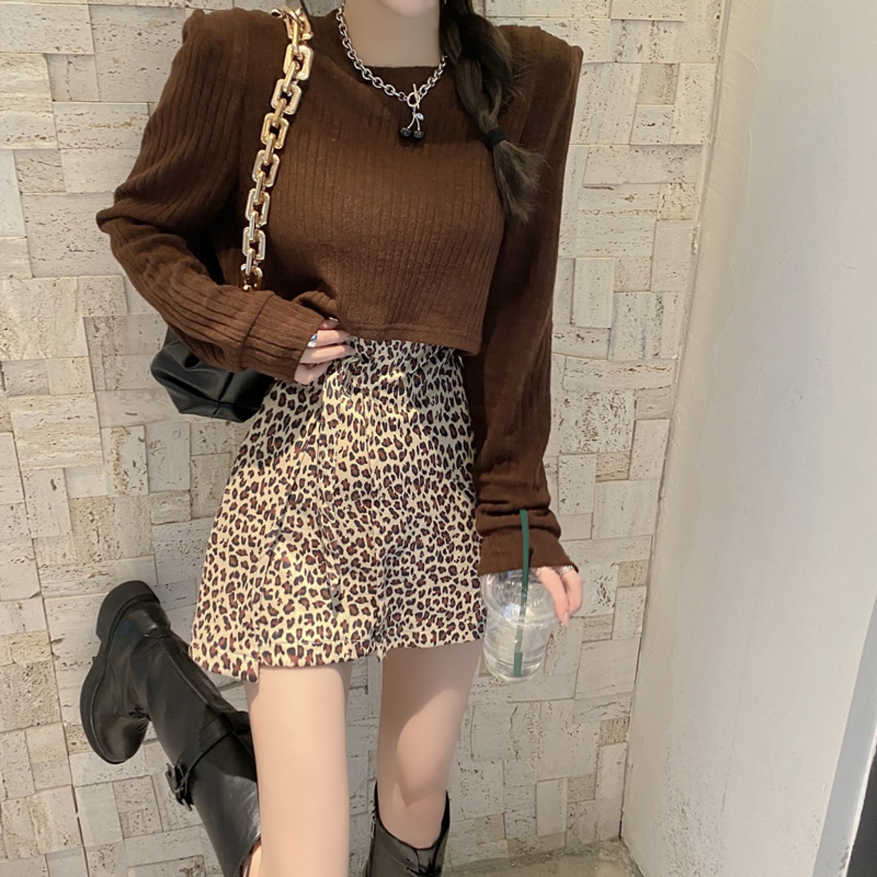 ソリッド カラーストライプトップス レオパードプリント柄ストレッチウエストスカート ロング マキシロング丈 マキシ丈 エラスティック 伸縮 ソリッドカラー 女性 レディース 可愛い系51162901461
