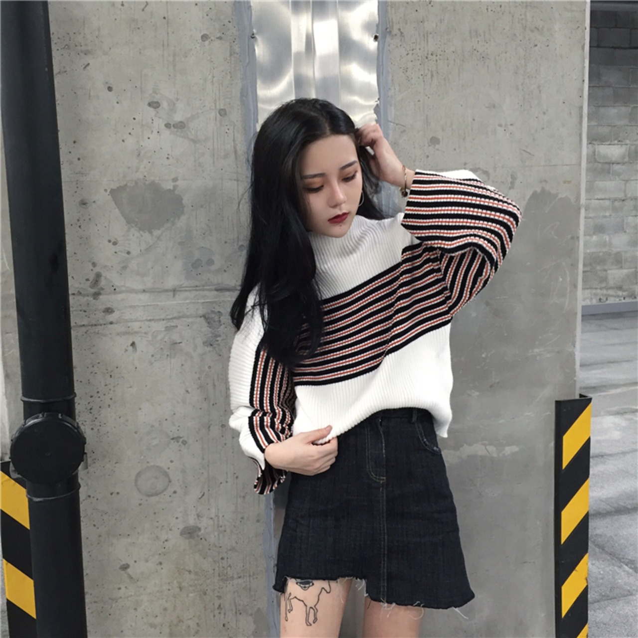 スタイルストライプルーズ薄手ニット セーターカラー 女性 レディース ふんわりかわいい75219535935