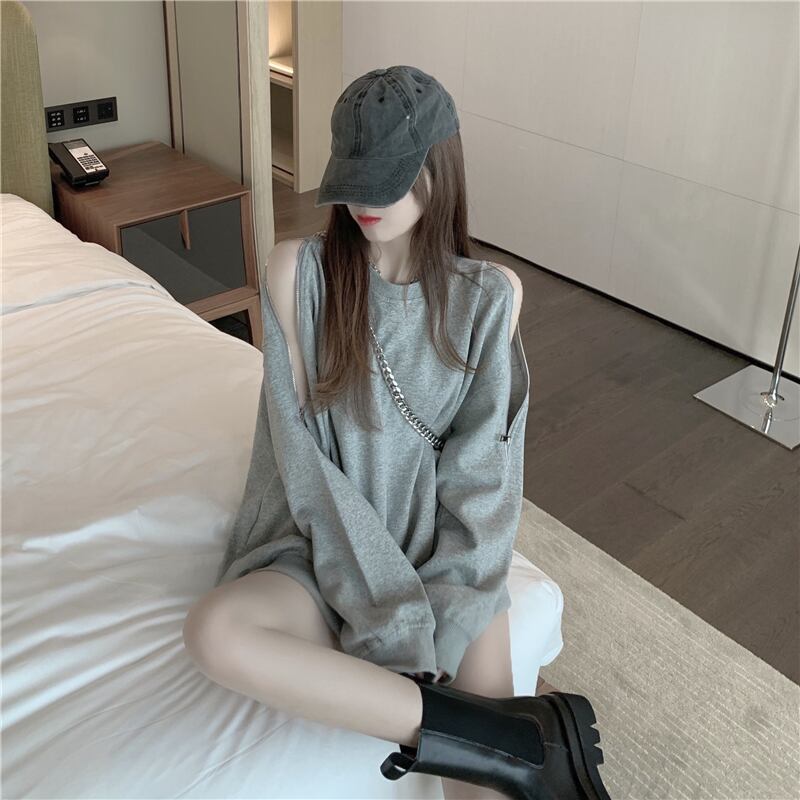 ルーズトップス ストラップレス ストラップなしジッパーラウンドネックプルオーバー Tシャツ ロング マキシロング丈 マキシ丈 女性 レディース 可愛い系12359794983 | nice import1 a5