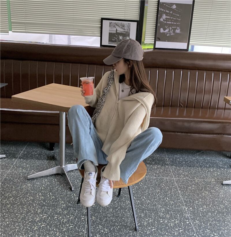 色:アプリコットジッパーセーター