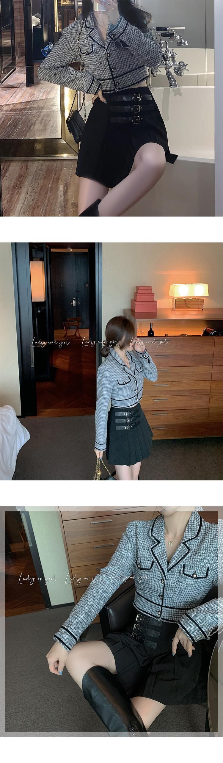 色:黒いジャケット,白いコート,プリーツスカート