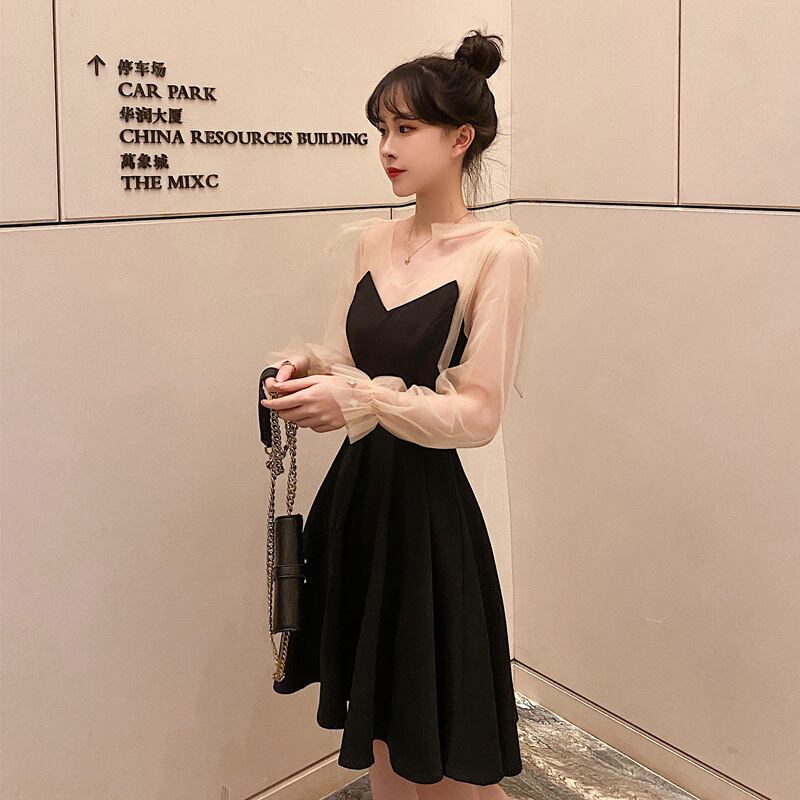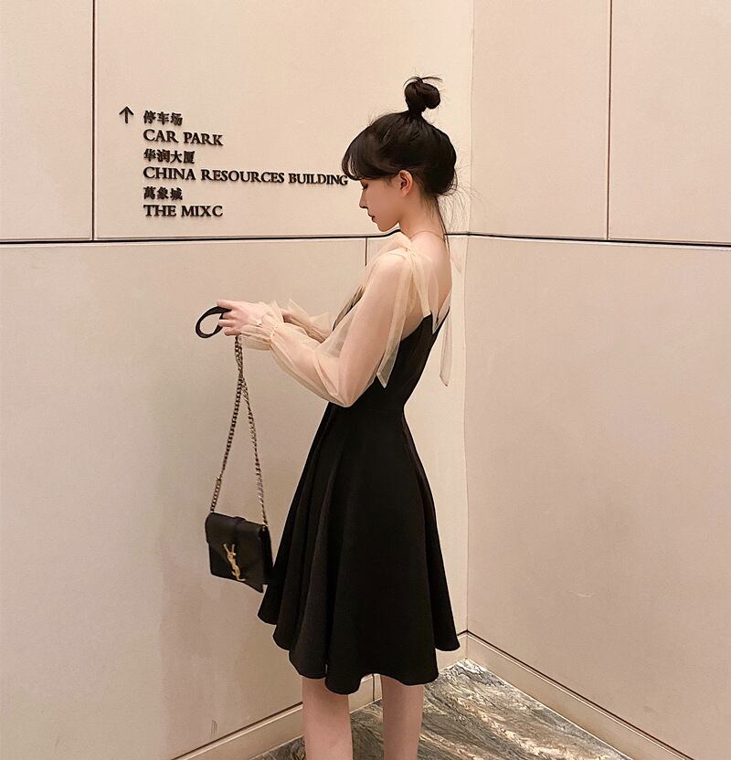 スタンダードブラック 黒ドレス ワンピース薄手メッシュ レース シースルー チュール オーガンジー レトロ ステッチ 女性 レディース ふんわりかわいい76745557892 | nice import1 a5