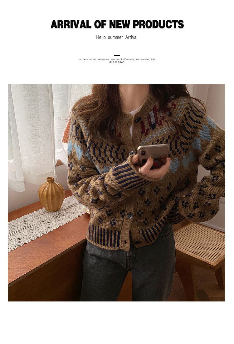 エスニックスタイルニットニット セータージャケット 上着 コートラウンドネックショート ショート丈 ミニ ミニ丈トップス 女性 レディース 可愛い系54641208458 | nice import1 a5