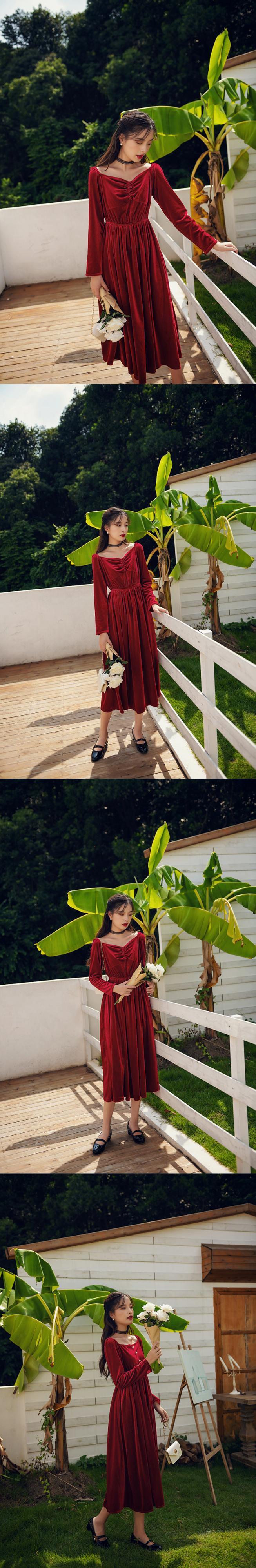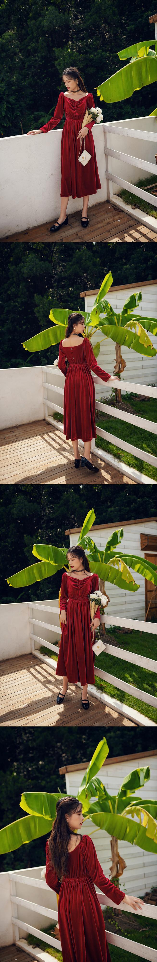 スタイルベルベットレッド 赤ドレス ワンピースロング マキシ ロング丈 マキシ丈ウエストブラック 黒 マキシロング丈 レース 長袖 長そで 女性 レディース フェミニン系36593225558 | nice import1 a5