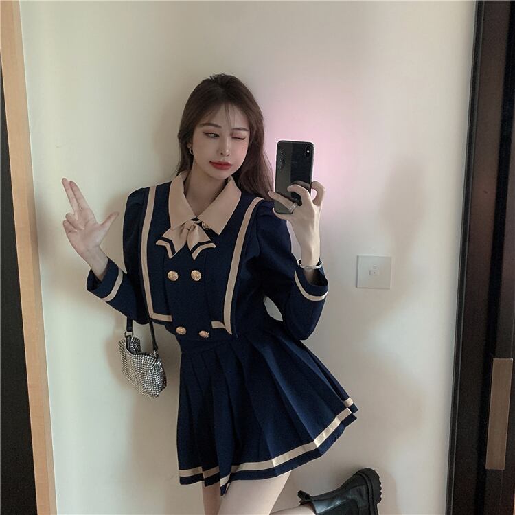 色:ホワイトトップ,ネイビーブルーのトップ,白いスカート,ネイビーブルーのスカート