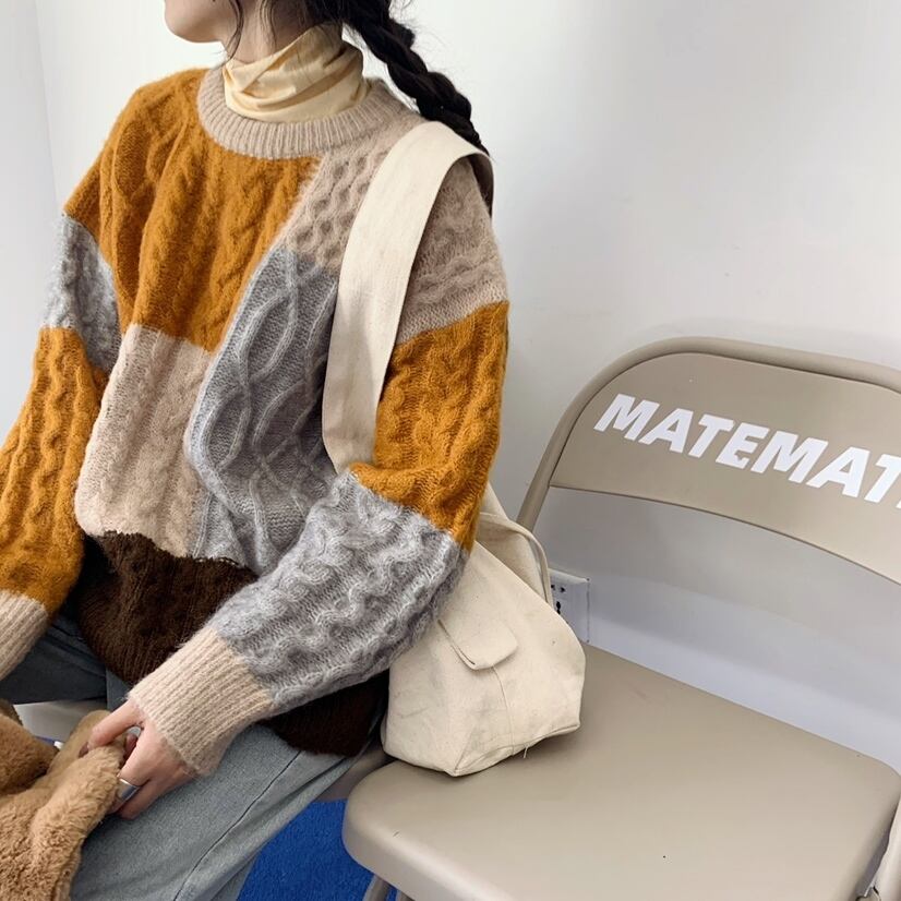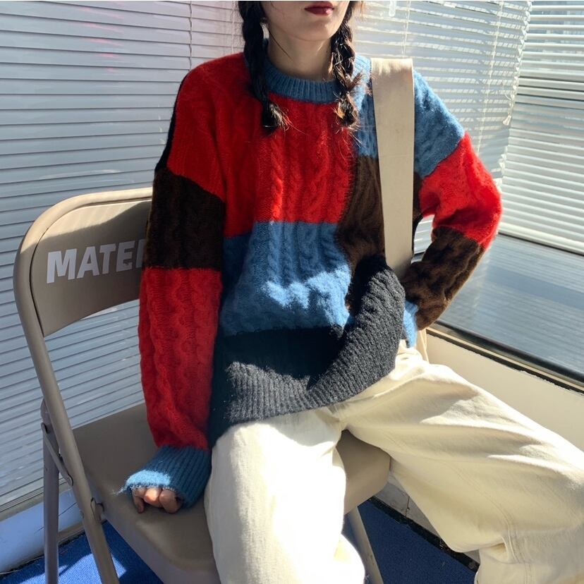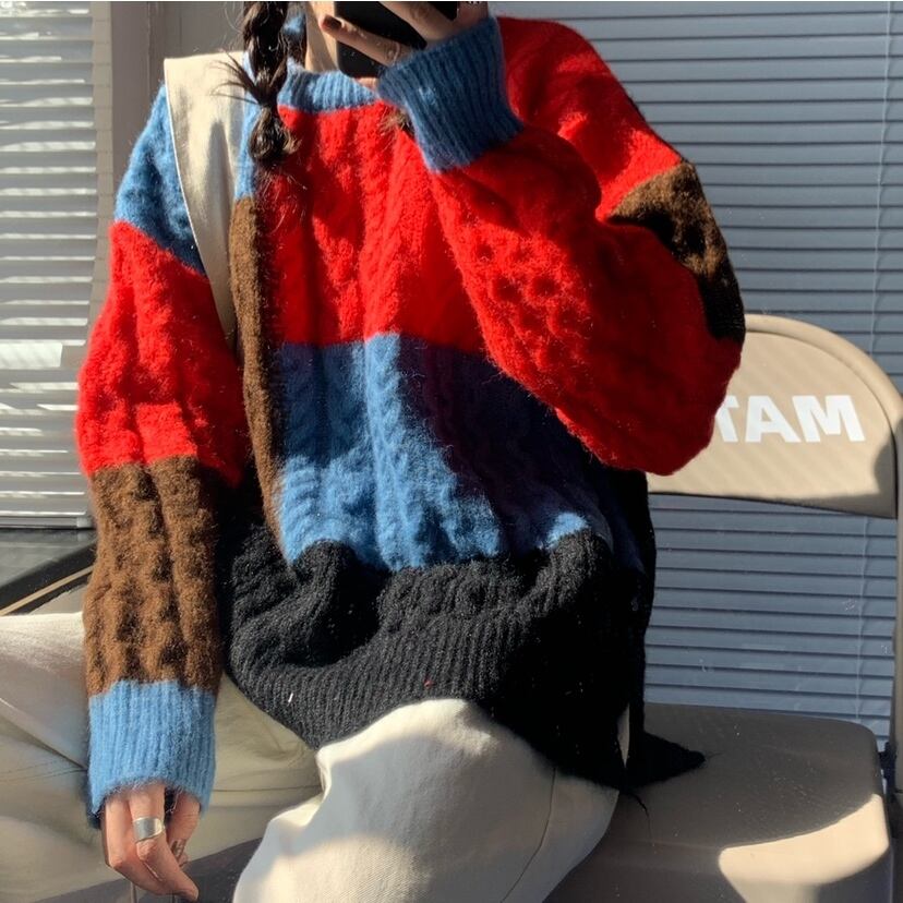 ルーズカジュアルスタンダードカラーブロックニット セーターニットプルオーバー トップス ロング マキシロング丈 マキシ丈 レトロ 女性 レディース 可愛い系12954735818 | nice import1 a5